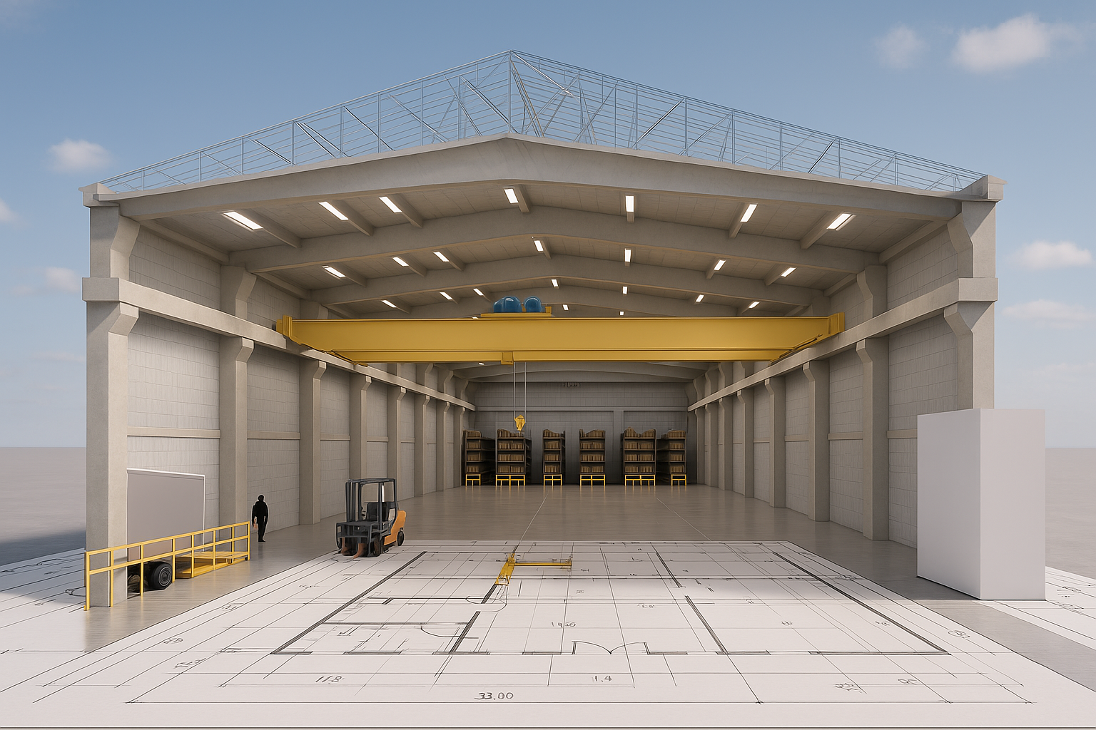 Bodegas en lotes desde 2700 m² con altura de 14.3 m, andenes para tráiler, grúas de 5–15 Tm, oficinas de 50 m² (ampliables), estacionamiento para 14 autos y trailers. Se permiten configuraciones personalizadas en estructura, pisos, ventilación e iluminación. Ideal para unir lotes y construir bodegas hasta 30,000 m².